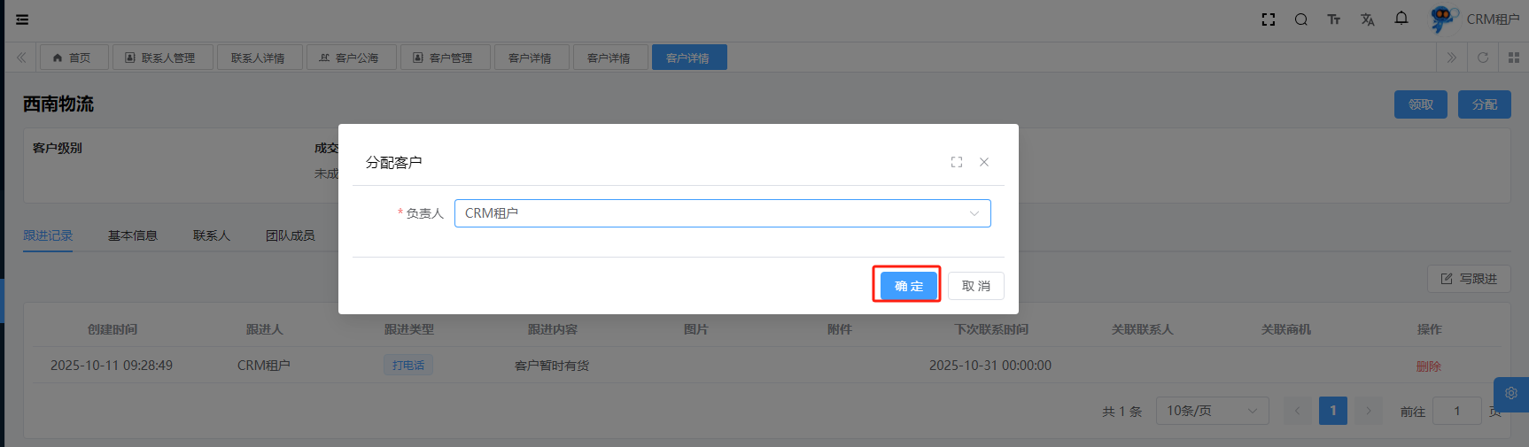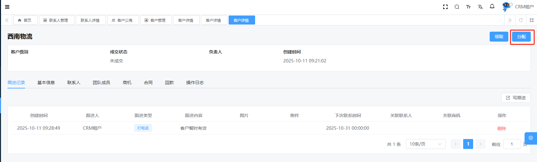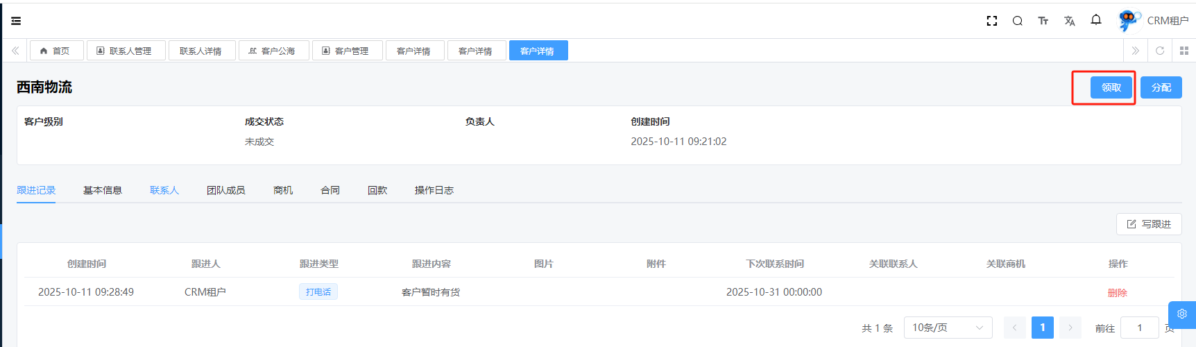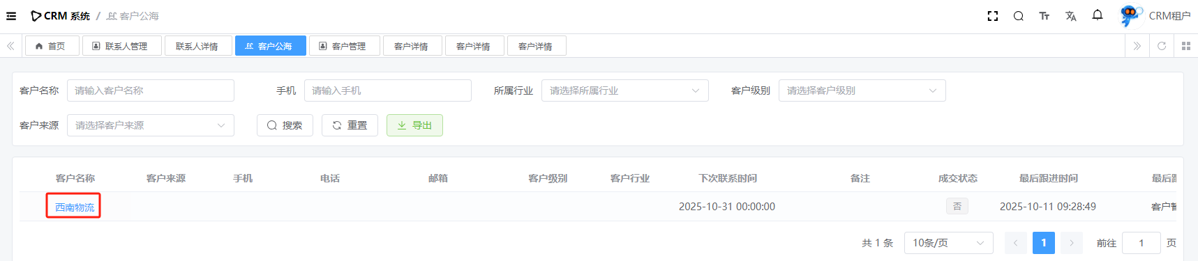 目录 搜索 展开 系统设置用户管理角色管理部门管理岗位管理消息中心短信管理短信日志邮箱管理邮件记录站内信管理消息记录通知公告工作流程流程管理流程模型流程分类审批中心我的流程待办任务已办任务抄送我的CRM系统待办事项线索管理客户管理联系人管理客户公海商机管理合同管理回款管理回款计划产品管理数据统计客户分析排行榜员工业绩客户画像销售漏斗系统配置客户公海配置客户限制配置产品分类配置商机状态配置合同配置ERP系统采购管理采购订单采购入库采购退货供应商信息销售管理销售订单销售出库销售退货客户信息库存管理仓库信息产品库存出入库明细其它入库其它出库库存调拨库存盘点产品管理产品信息产品分类产品单位财务管理付款单收款单结算账户 暂无相关搜索结果! 阅读次数:15 客户公海 1.1详情1.2领取1.3分配作者:admin 创建时间:2025-10-10 17:38最后编辑:admin 更新时间:2025-10-14 11:08